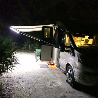 We quickly fell in love with the Florida State Park system. We found an efficient check-in, a clean park with ample-sized lots and level parking spots. We enjoyed the unique configuration of the sites that were surrounded by thick foliage, providing extra privacy. While we couldn't park next to our partners, we were just a short walk through a brush-lined pathway to their site. I'm sure camping in Florida mid-year is a different experience with the heat and humidity, but we found the winter season to be a great time to tour the parks. That night, we enjoyed burgers on the grill and some frisbee throwing and ring toss.