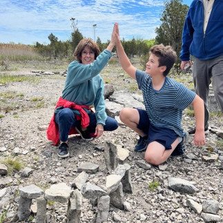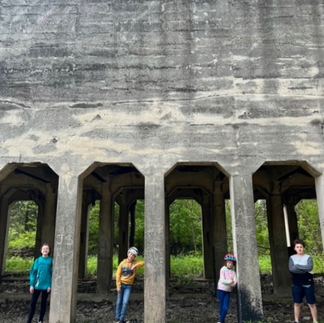 The kids did a lot of biking around the campground. We biked again the next day, but this time it was a greater distance to reach one of the abandoned limestone quarries on Ward Road. The kids were busy exploring the open pit, skipping rocks, finding snakes, discovering fossils, and building a replica of Stonehenge. After that, it was back into town and east along