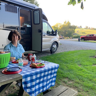 After our morning hike, we weren't here for the trail but rather a place to crash as we waited for our campsite to become available. One of the nice features of the WonderRL are the multiple areas to relax. One can swivel and partially recline the front seats, or sit at a table in the front area or sit or recline in the rear lounge. The two powerful ceiling exhaust fans along with the help of a shade tree kept the temperatures comfortable for a quick nap..
